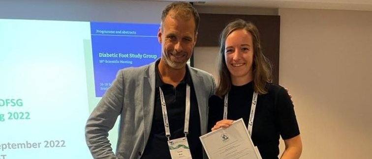 Lisa Vossen, PhD candidate at the department of rehabilitation medicine at AUMC, was awarded the prize during the Footwear Biomechanics Conference.