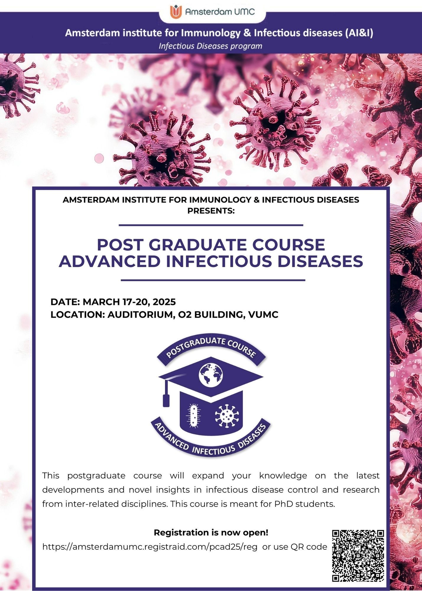 - For PhD students being part of the Amsterdam institute for Immunology & Infectious diseases (AI&I) the registration fee is waived.
