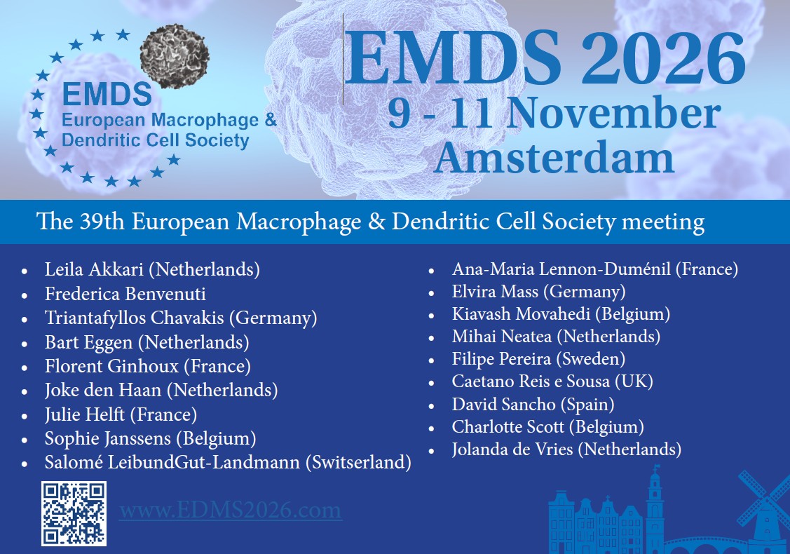 The 39th Annual Meeting of the European Macrophage and Dendritic Cell Society will take place from 9–11 November in Amsterdam. This annual gathering is the premier event for scientists passionate about macrophage and dendritic cell biology.
