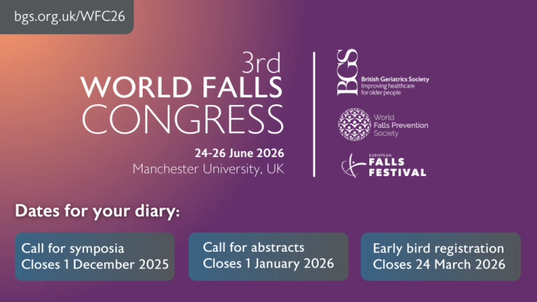 Abstracts are now being accepted for the 3rd World Falls Congress. Abstract submission guidelines are available at https://www.bgs.org.uk/abstracts and includes the submission portal. The deadline is 5pm GMT 1st January 2026.