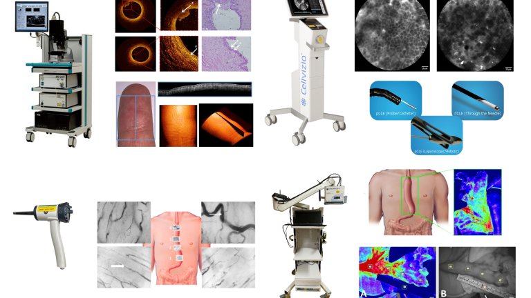 Confocal laser endomicroscopy (CLE) is an advanced imaging technique that allows real-time, high-resolution visualization of tissues at the cellular level during endoscopy or needle-based interventions. CLE is based on fluorescence and uses 488 nm light to excite either fluorescein or intrinsic auto-fluorescence (i.e. cartilage) to create in vivo confocal images. The CLE engine is interfaced with several fiber-based catheters, all using different optics depending on the required need. The imaging depth is around 60 micrometer and the field of view, depending on the used imaging catheter, ranges from 150 to 500 micrometer.