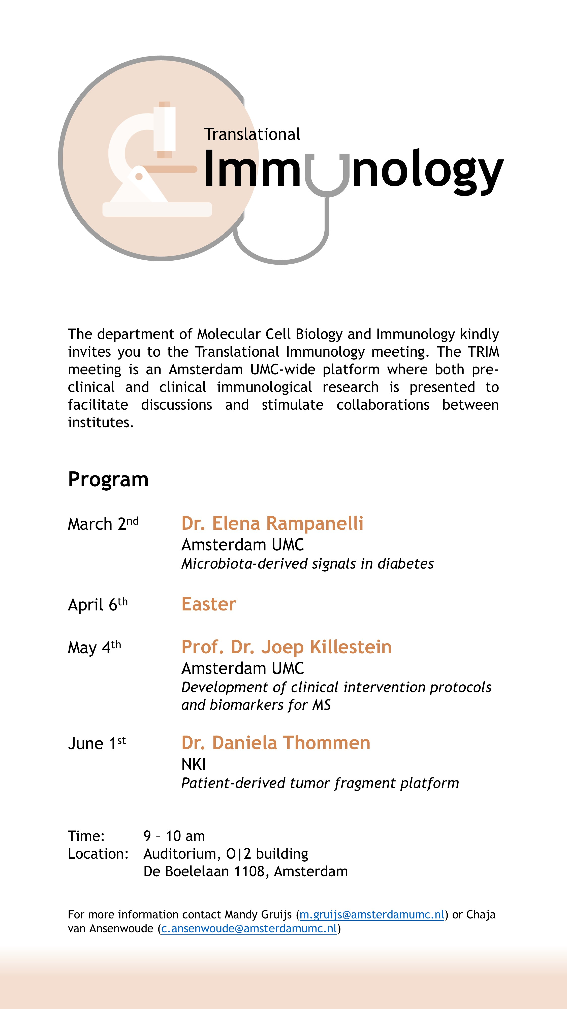 For more information contact Mandy Gruijs (m.gruijs@amsterdamumc.nl) or Chaja van Ansenwoude (c.ansenwoude@amsterdamumc.nl)