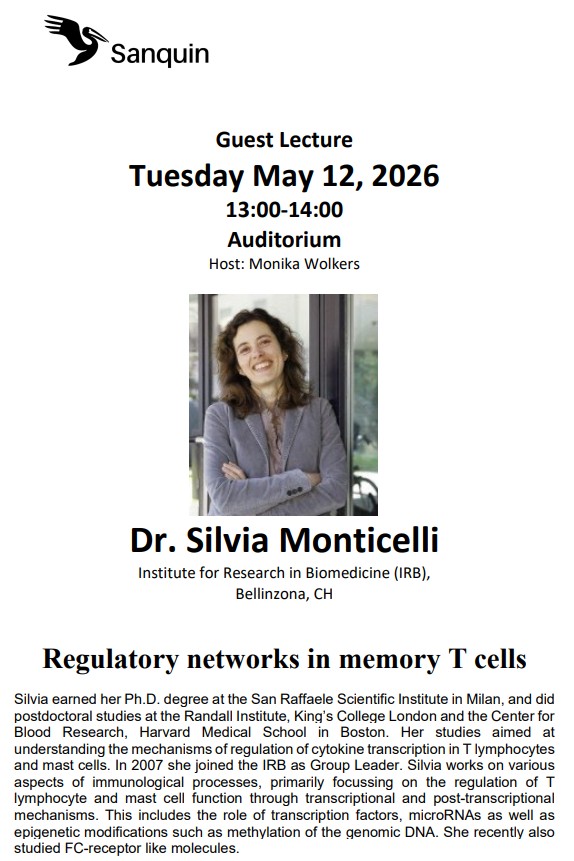 Sanquin Guest Lecture - Dr. Silvia Monticelli