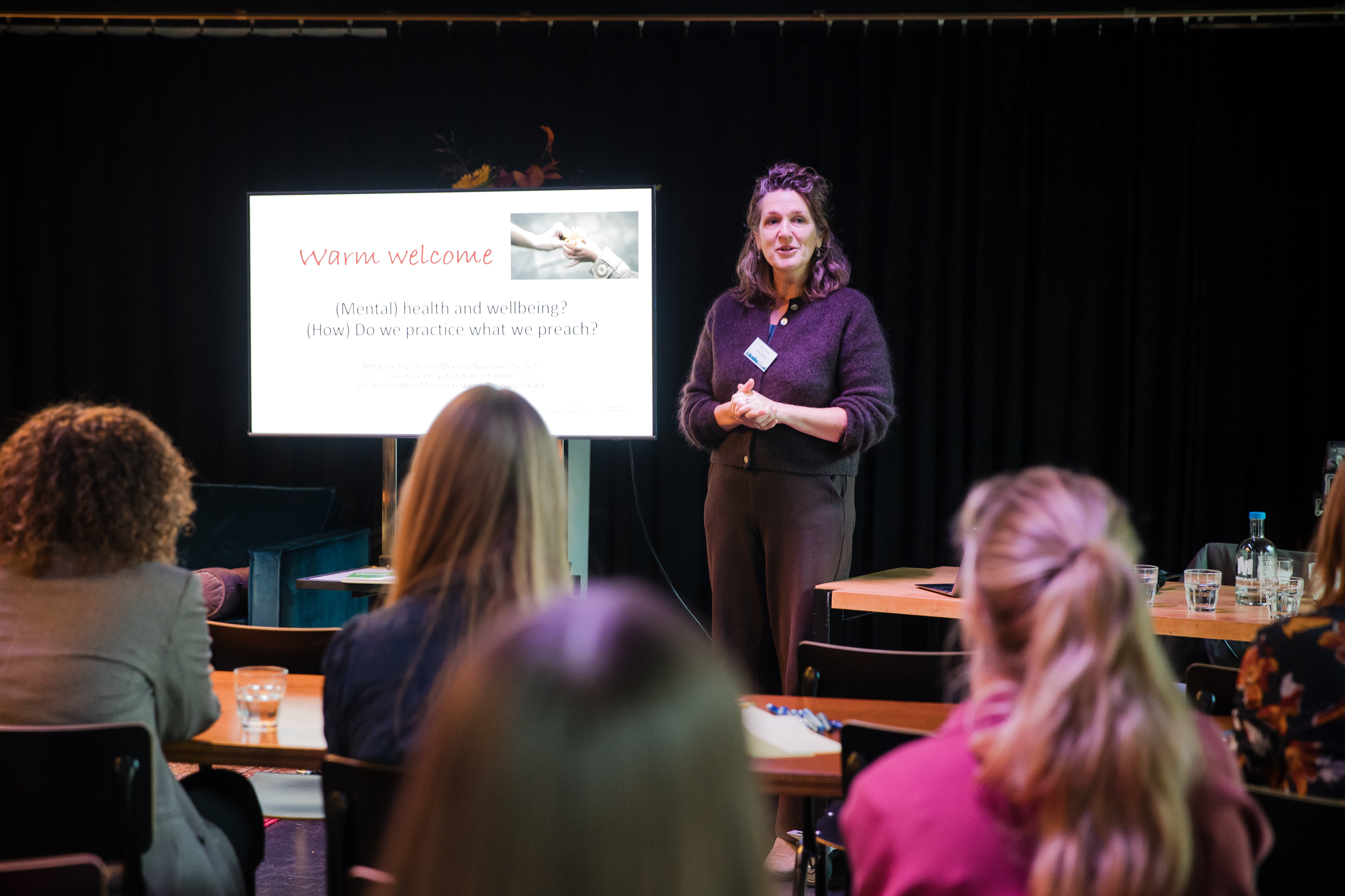 During the interactive workshop organized by Societal Participation & Health, in collaboration with the APH Diversity, Equity & Inclusion (DEI) committee, participants were invited to reflect on their own (mental) health and wellbeing as researchers. The session provided an open space for reflection, sharing, and inspiration, with the aim of making a collective impact on how we care for ourselves within the academic world.
