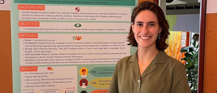 After finishing her bachelor- and master’s medical degree cum laude and with honours in 2021, Eva Cohen started working as a doctor not in training at the obstetrics and gynaecology department at Zaans Medisch Centrum and later at Amsterdam UMC, location AMC. Soon, she sought to broaden her scope of clinical care through engagement in education and research, driving her to pursue a PhD in a topic that is off the beaten track: investigating the environmental impact of gynaecological care