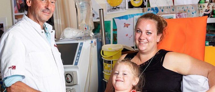 En dat terwijl er zo’n groot tekort is aan donoren? “Allereerst gaat het hier om een kleine patiëntengroep, het komt niet vaak zo vaak voor. Daarnaast hebben Nederlandse ouders, of soms grootouders, een grote bereidheid om een nier aan hun (klein)kind af te staan. We denken dat afkomst ook een rol speelt; alle kinderen die we momenteel wel op de dialyseafdeling hebben, zijn van niet-Nederlandse afkomst. Bij hen is de beslissing om te transplanteren blijkbaar ingewikkelder. Overigens, transplantatie is niet hetzelfde als genezing. We weten dat veel mensen op latere leeftijd een ernstige vorm van huidkanker ontwikkelen na transplantatie. Soms wordt de donornier afgestoten. Ook is er infectiegevaar en moet de patient de rest van zijn leven medicijnen slikken en op zijn dieet letten. Maar het heeft zeker de voorkeur boven dialyse.”