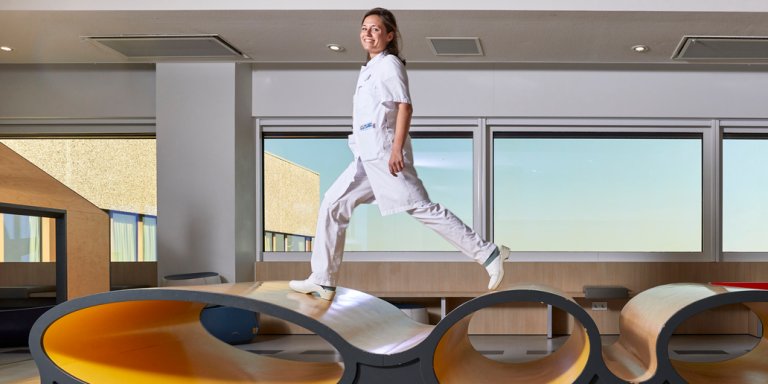 “Die voorbereiding is alles, want een ziekenhuisbezoek is best ingrijpend voor kinderen. Ze kunnen na de operatie bijvoorbeeld last krijgen van nachtmerries of bedplassen. Daarom hebben we diverse hulpmiddelen ontwikkeld om kinderen thuis voor te bereiden. Voor de allerjongsten is er een kleurplaat. Ook hebben we een filmpje gemaakt dat toont hoe zo’n dag in het ziekenhuis eruitziet. En voor de wat oudere kinderen hebben we samen met stichting Hoi Dokter een app ontwikkeld: ‘Dag liesbreuk’. Die is uitvoerig getest en verbeterd. De app biedt allerlei informatie over het verloop van de opname en wie ze allemaal kunnen tegenkomen in het ziekenhuis. Ook kunnen ze alvast virtueel over de afdeling en de operatiekamer ‘lopen’. Voor ouders is een begeleidende gids beschikbaar met meer gedetailleerde informatie. Op die manier bepalen zij zelf welke informatie ze aan hun kind tonen en hoe lang ze bij een item stil willen staan. Dit werkt zo goed, dat het operatiepersoneel aan ons vroeg wat we met de kinderen gedaan hadden omdat ze zo relaxed waren voor de ingreep.”