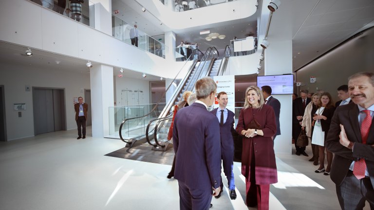 Het Amsterdam UMC Imaging Center opende op 31 oktober zijn deuren. In dit centrum komen klinische zorg, onderzoek en het ontwikkelen van medicijnen onder één dak. De ‘winst’ die hiermee wordt behaald, is zowel voor patiënten als onderzoekers enorm.  "Door op één plek te zijn, kunnen we sneller een diagnose stellen en kijken welke behandeling het beste is", aldus Guus van Dongen, hoogleraar medische beeldvorming en initiatiefnemer van het centrum. Koningin Máxima bracht een werkbezoek aan het Imaging Center.